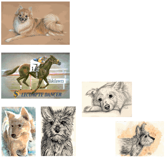 Pet portraits are some of the most gratifying I undertake. Probably because of the nature of a pet’s “unconditional love.” How can anyone resist it? Here are some examples of my pet portraits. Each one has a unique look. The combination of medium, stock and client’s input bring out the pet's unique character. The subject can be any pet you would like to immortalize, dogs, cats, horses or exotic animals. Presently I offer portraits in colored pencil, watercolor and graphic pen. The pencil & pen mediums are rendered on premium Strathmore Artist Papers, colored or white stocks. The watercolor paintings are in a “wet technique” on premium Canson, white watercolor paper. The sizes range from 8 x 10", 11 x 14" to 16 x 20". Special larger sizes can be commissioned. Portraits can be rendered as bust, full body or a combination of both. In that vein, multiple subject portraits can be requested. Helpful Tips & How to order... |